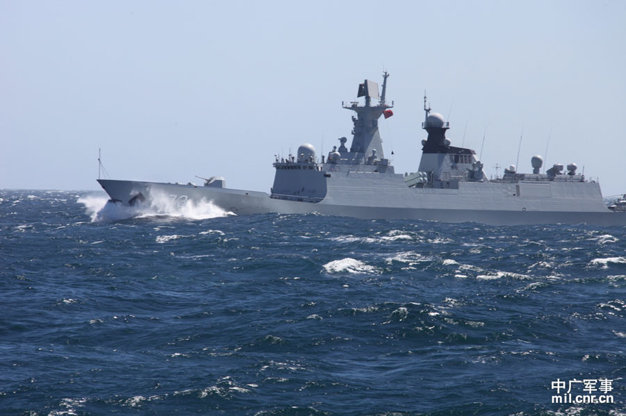 中国海軍の052C型ミサイル駆逐艦「蘭州艦」、054A型フリゲート「柳州艦」から成る艦艇編隊は10日、チリ海軍のフリゲート「アルミランテ・リンチ(旧・英リアンダー級)」と旧オランダのカレルドールマン級のフリゲート、及び航空機5機と共に、海上における合同軍事演習を行った。