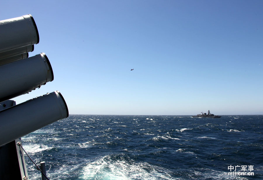 中国海軍の052C型ミサイル駆逐艦「蘭州艦」、054A型フリゲート「柳州艦」から成る艦艇編隊は10日、チリ海軍のフリゲート「アルミランテ・リンチ(旧・英リアンダー級)」と旧オランダのカレルドールマン級のフリゲート、及び航空機5機と共に、海上における合同軍事演習を行った。