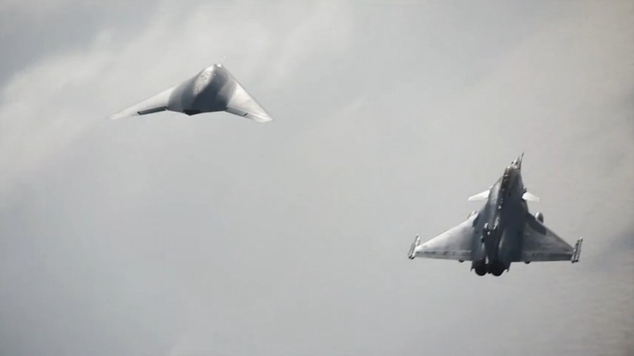 仏ラファール戦闘機とビジネス機、ニューロン無人機を引き立てる