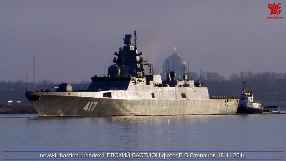 ロシアが開発した最新の22350型フリゲートが設備取付と消磁過程を終え、海上試験に向け出港した。同艦はサンクトペテルブルク市の造船所「セーヴェルナヤ・ヴェルフィ」によって設計された。赤外線・騒音を抑えるため、マストは多面体構造になっている。同艦はロシア版イージス艦と呼ばれている。