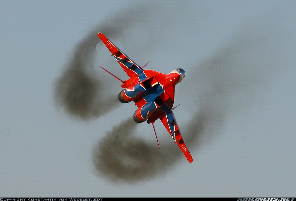 MiG-29、曲芸飛行で黒煙を吐く
