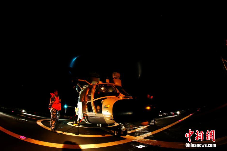 4月19日、インド洋に夕日が沈み、赤い夕焼けが広がった。第20期護衛航行艦隊の済南艦、益陽艦の艦載ヘリは現地時間17時、旋回音と共に飛行甲板から夜空に飛び立ち、今回初となる航行中の昼夜を分かたぬ2機同時飛行訓練を実施した。