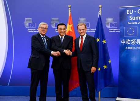 李克強総理は現地時間29日午後、ブリュッセルの欧州理事会本部でトゥスクEU大統領、ユンケル欧州委員長と第17回中国・EU首脳会議を行った。