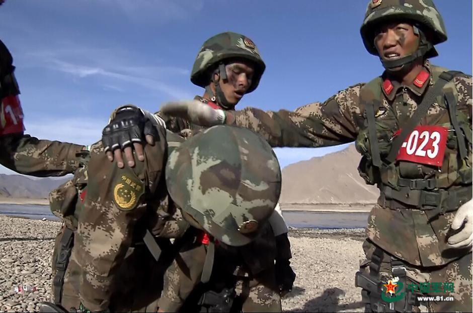 チベット武装警察特戦隊員の訓練 武器を担いで登山