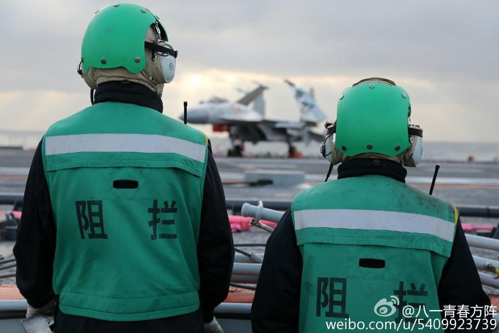 空母の甲板は「世界で最も危険な4.5エーカー」と呼ばれている。中国の空母「遼寧艦」も世界各国の空母と同じく、飛行甲板に数十人の甲板作業員がいる。艦載機の発着艦のサポートの指揮をより分かりやすくするため、彼らは持ち場別の色が着いた作業服を着用している。赤・黄・青・緑・紫などの作業服を着た作業員は、空母甲板の七色の絵を成している。