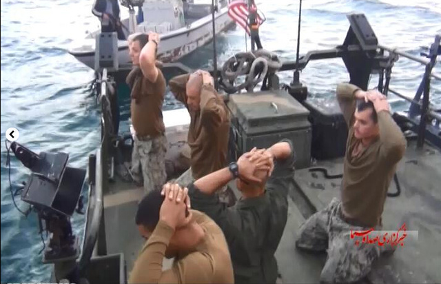 イランが米軍巡視艇を差し押さえる映像が公開 米軍兵が跪く