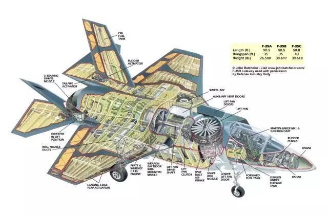 F-35B戦闘機の特徴は、空中停止時、推進器の非加力状態における上昇力が全推力に非常に近い点である。