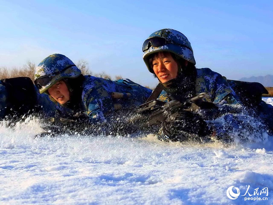 水陸偵察女性兵が訓練 ゴビ砂漠に彩りを添える