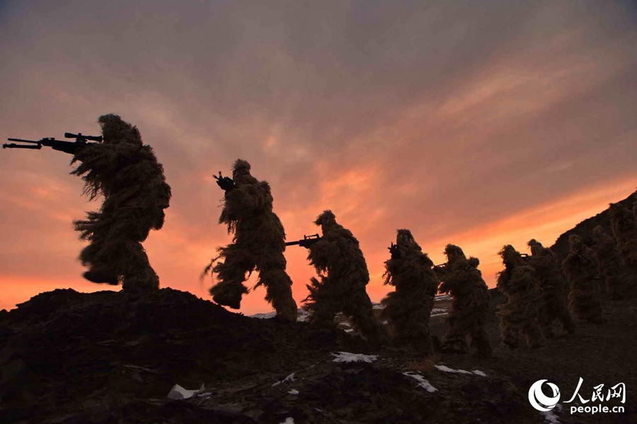 水陸偵察女性兵が訓練 ゴビ砂漠に彩りを添える