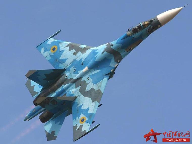 ウクライナ空軍のSu-27戦闘機、旧ソ連の3色の迷彩を継承。