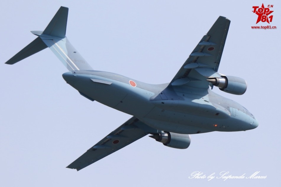 日本のC-2輸送機の量産初号機が試験飛行