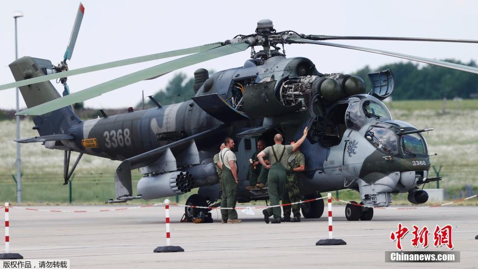 ベルリン国際航空宇宙ショー2016がまもなくベルリン南部のシェーネフェルトで行われ、開幕式に参加する多種の新型兵器が次々と会場に到着した。写真は、航空ショーに参加するMi-24武装ヘリコプター。
