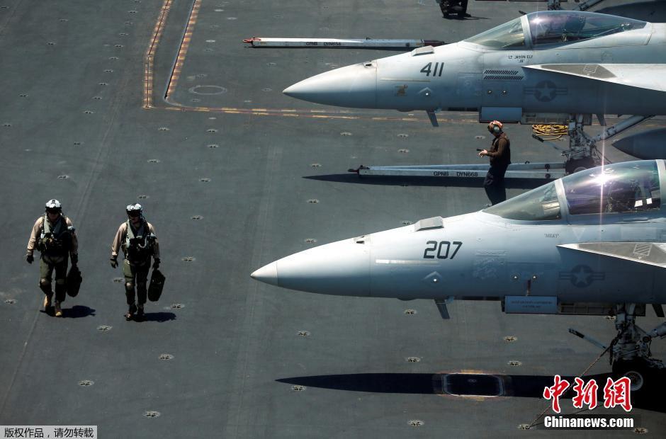 米空母「ハリー・S・トルーマン」が21日、ギリシャのクレタ島に到着した。5500人の乗組員は海上を7ヶ月間航行し、イラク・シリアの「イスラム国」の2000以上のターゲットを攻撃し、ついに小休憩が許された。空母の乗組員が戦闘機にうつ伏せになって休憩。