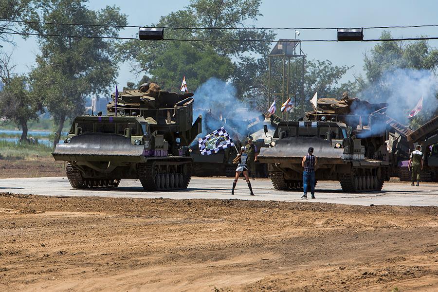 ロシア軍事技能コンテスト 工兵車が高度な技を披露