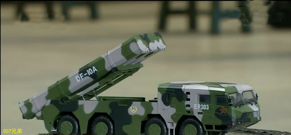 中国中央テレビ(CCTV)の番組は、中国軍の未来の長距離巡航ミサイル「DF-10」が連発する勇ましいシーンを流した。