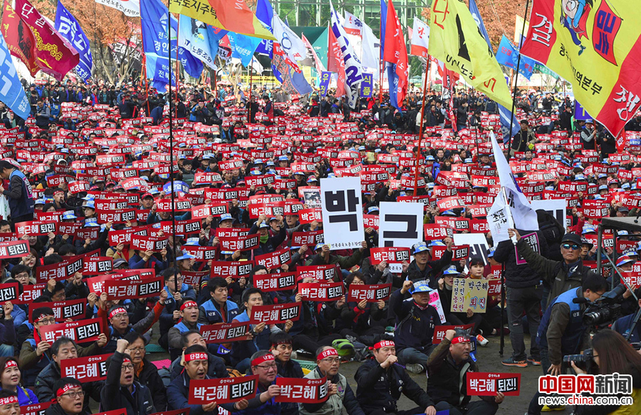 韓国、パク大統領の退陣を求める集会参加者60万人に