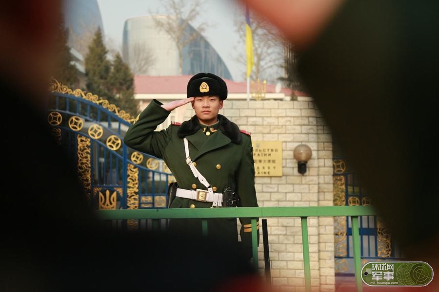 某大使館前での哨兵の交代