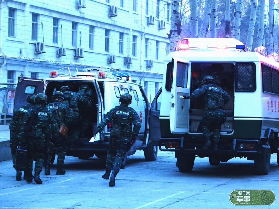 完全武装して大使館周辺を巡回する特戦分隊の兵士