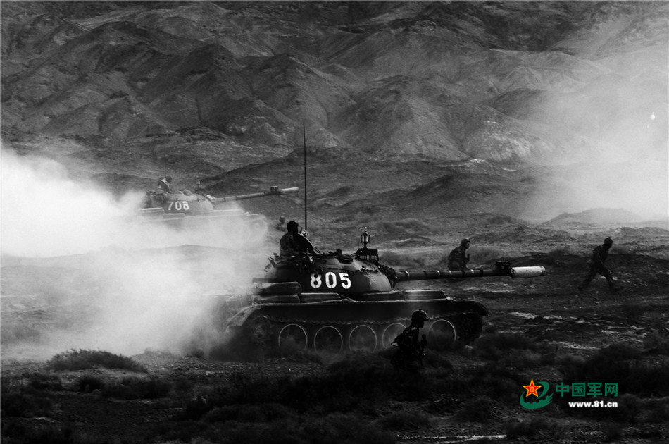 新疆某装甲団、ゴビで対抗演習を実施