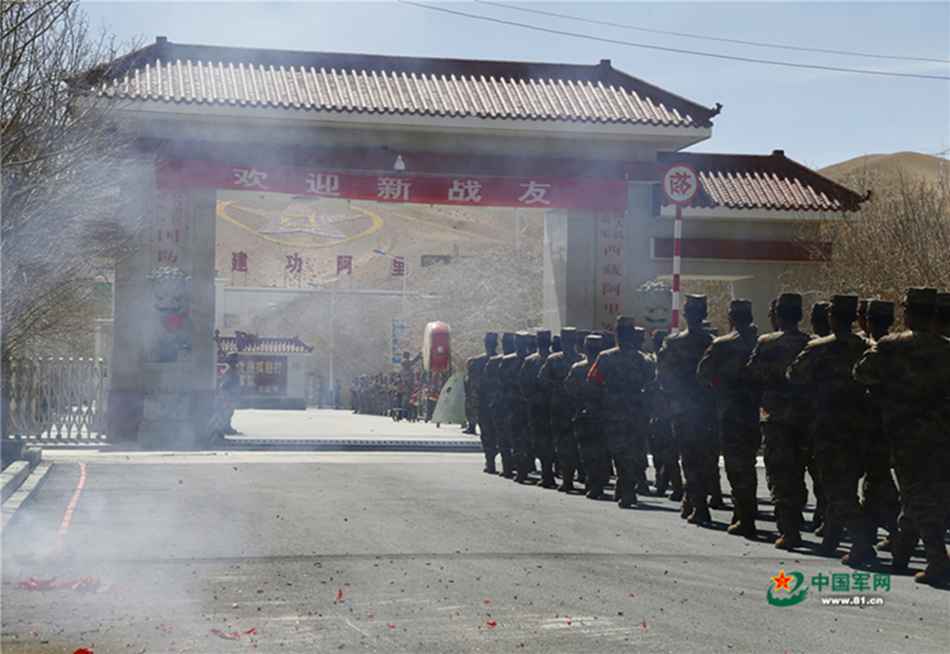 新疆軍区阿里軍分区葉城留守所新兵営は17日、春らしく活気に満ち溢れていた。歌声と号令が、軍営内にこだました。阿里高原に配属された新兵500人は荷物を背負い、元気いっぱいに出発した。