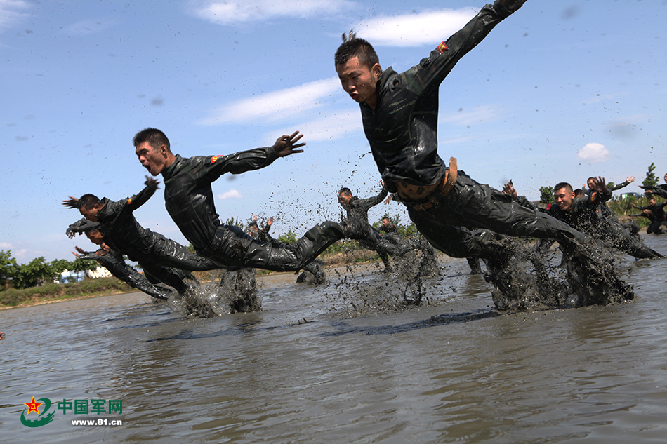 武装警察の特訓 特戦隊員が泥だらけで格闘