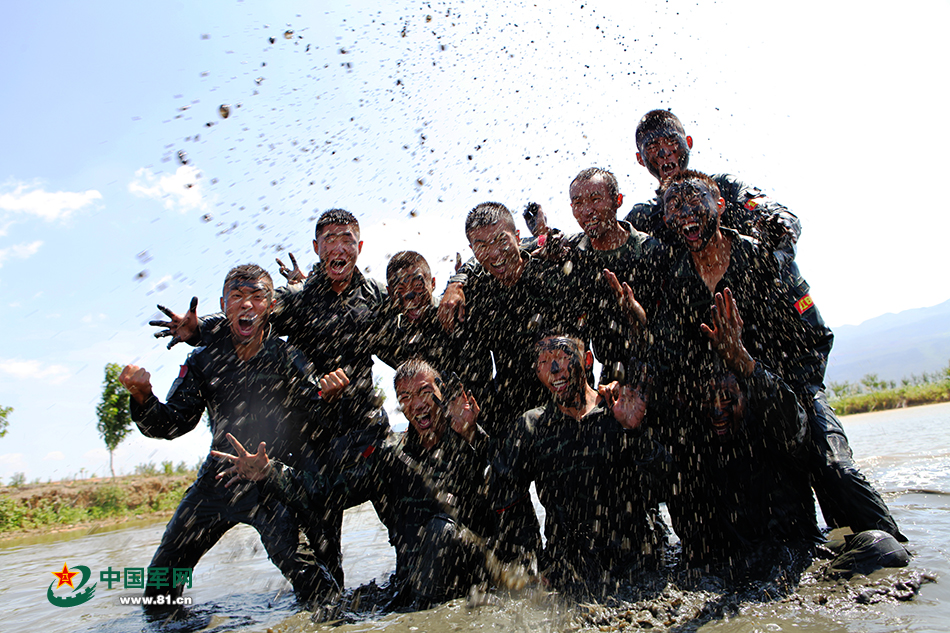 武装警察の特訓 特戦隊員が泥だらけで格闘