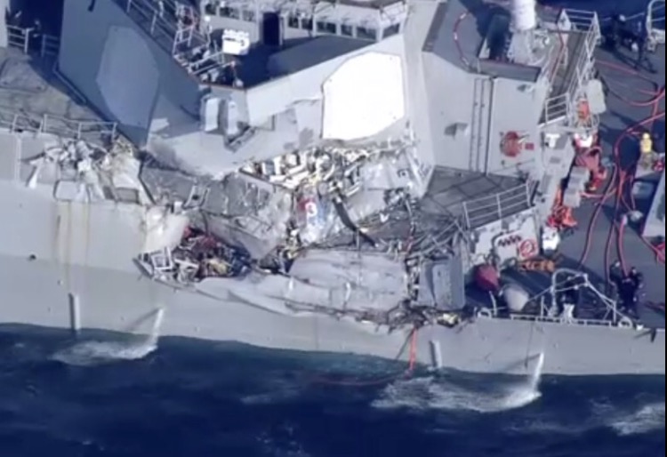 米メディアの17日の報道によると、米海軍は金曜日、ミサイル駆逐艦「フィッツジェラルド」が日本付近の海域で商船と衝突したと発表した。事故発生地点は横須賀から南西方面。米海軍第7艦隊が18日に発表した声明によると、衝突事故により行方不明になった米軍乗組員7人全員が死亡した。