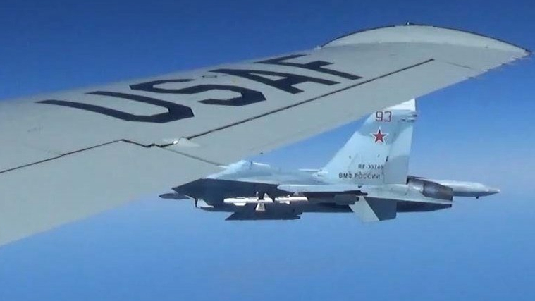 アメリカ欧州軍はこのほど、ロシアのSu-27戦闘機が米軍のRC-135偵察機を迎撃する様子を撮った写真を公開した。6月19日、ロシア軍のSu-27戦闘機はバルト海の上空で米空軍のRC-135偵察機を迎撃し、Su-27はRC-135からわずか1.5メートルの場所まで近づいた。