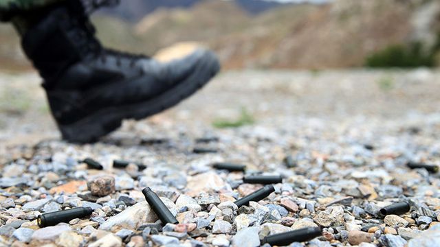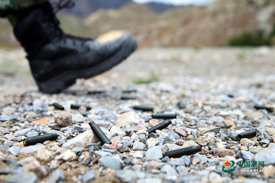 夏の賀蘭山で銃声が鳴り響き、「銃王の戦い」がここで上演された。限界に挑む「スパルタ特訓ウィーク」の4日目である23日、武装警察寧夏総隊銀川市支隊の特戦隊員が、烈火のような太陽と風沙を物ともせず射撃コンクールを行った。写真は薬莢のそばを歩く特戦隊員。