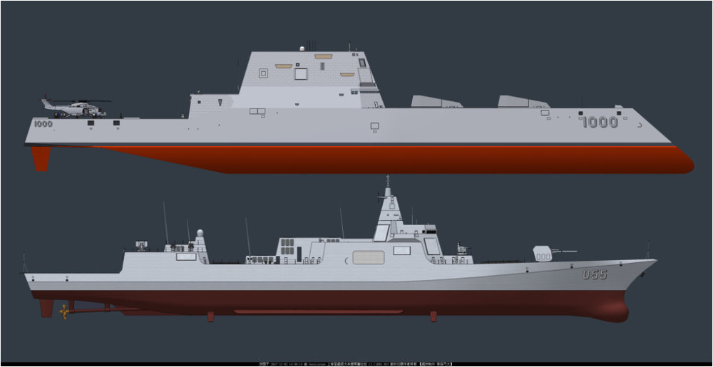 DDD-1000ミサイル駆逐艦と中国の005型ミサイル駆逐艦は、中米両国の最も先進的なミサイル駆逐艦だ。ネットユーザーは両艦の同角度・同スケールのCGを作成した。両艦の違いがよく分かる。