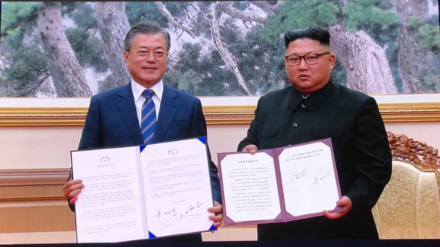 朝鮮の平壌で現地時間の19日午前、朝鮮の最高指導者である金正恩氏と韓国の文在寅大統領が今回の首脳会談の成果である「平壌共同宣言」に署名した。韓国・聯合ニュースが伝えた。