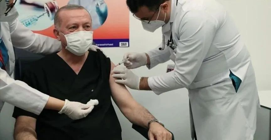現地時間1月14日、トルコのエルドアン大統領はアンカラの病院で中国北京科興中維生物技術有限公司の新型コロナウイルスワクチン「コロナワク(CoronaVac)」を接種した。