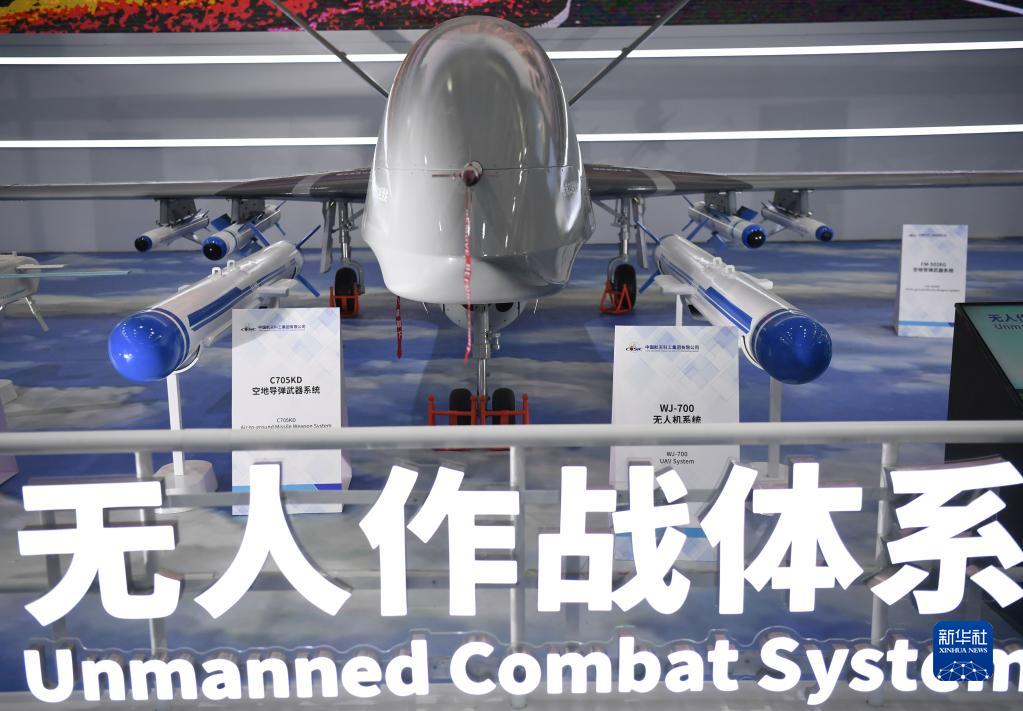 中国航天科工集団有限公司が展示した無人機作戦体系(27日撮影)。新華社記者・鄧華撮影