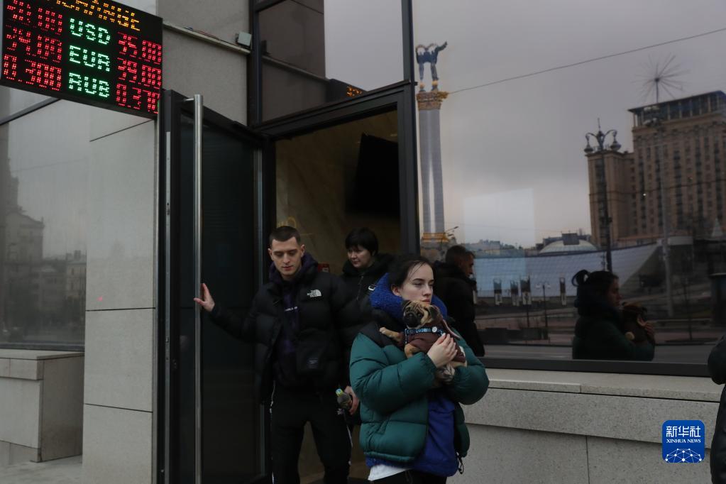 ウクライナのキエフで24日、現地住民がそろって銀行から現金を引き出した。ウクライナの通信社によると、ウクライナ議会で24日、ウクライナ全土の非常事態宣言の大統領令が可決された。