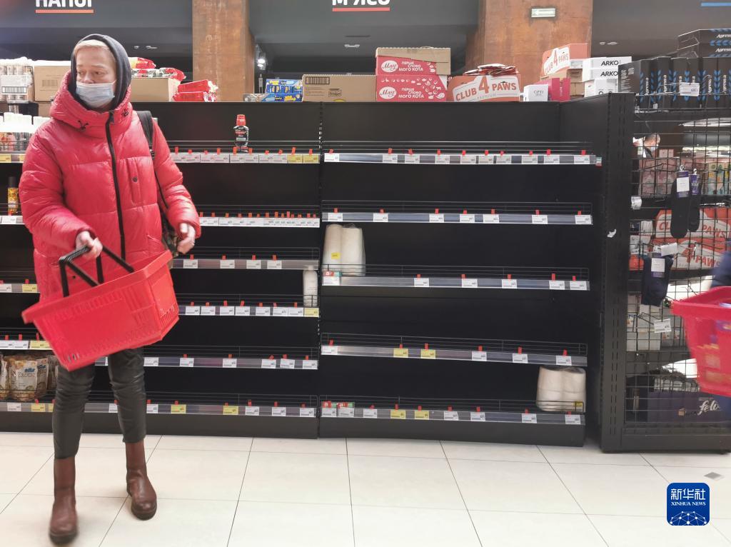 市民が28日、ウクライナ・リヴィウのスーパーで商品を購入した。新華社記者・陳文仙撮影