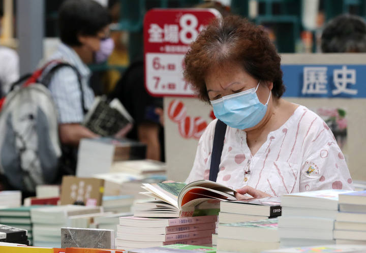 7月20日、香港ブックフェアで本を選ぶ香港市民。