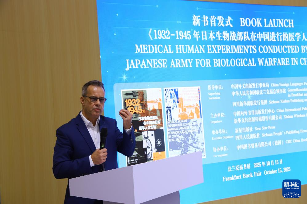 ドイツ人学者による「1932-1945年日本生物戦部隊による中国での医学人体実験」(中国語・英語版)の出版記念セレモニーが15日、フランクフルトブックフェアで開催された。著者は、ハイデルベルク大学医学部ハイデルベルク世界保健研究所(HIGH)所長を務めるティル・ベルニクハウセン教授。日本・米国・ドイツ等の歴史文献を学術的に検証し、第二次大戦中に日本生物戦部隊が行った人体実験の歴史を客観的に記述した。