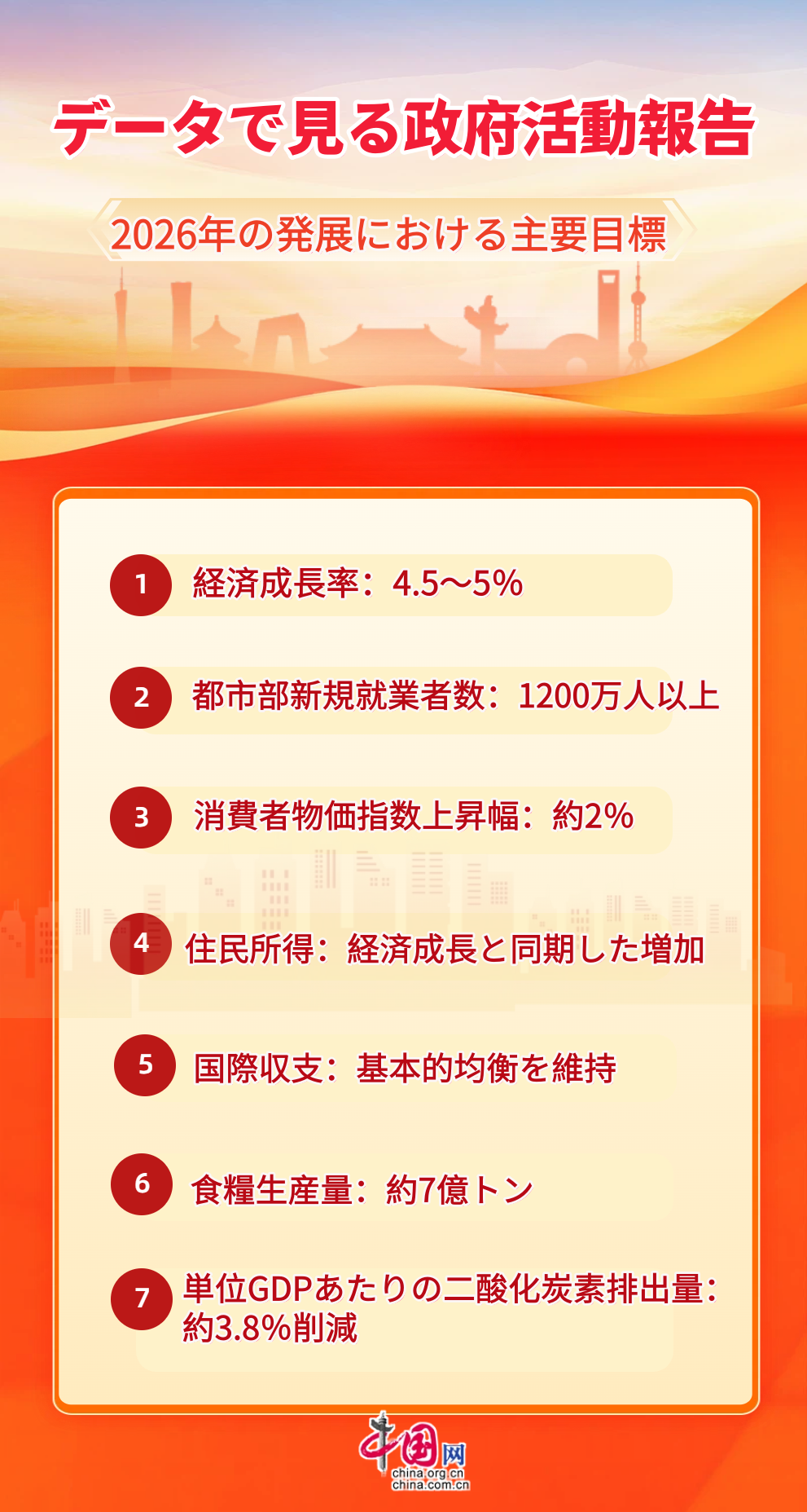 データで見る政府活動報告 2026年の発展における主要目標