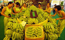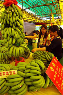 海南省の農業庁と楽東・黎族自治県が共同開催する「2007年海南省楽東・第1回バナナ祭」が16日に開幕した。国内外のバナナの販売・生産業者と現地の住民が、優良バナナコンテスト、バナナ王大会とバナナ食い競争に参加した。1株64キロのバナナが「バナナ王」に選ばれた。