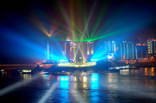 大型のレーザー電飾「朝天揚帆」が試験点灯 重慶