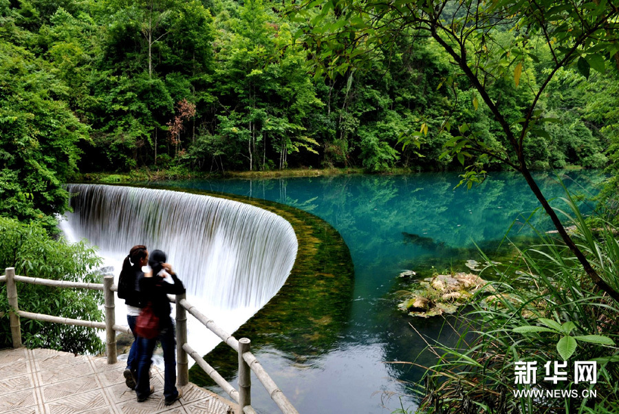 6月1日、貴州省荔波大小穴景観区の観光客 貴州省世界自然遺産地の荔波大小穴景観区では豊水期を迎えた。景観区の滝、河川の水量も増量し、静かな中に強い動的な美しさも感じられ、たくさんの観光客を魅了する。この景観区には、洞窟、森林、湖、滝、石、河川など多様な観光スポットが融合しており、繊細で美しい風景は「地球のベルトに嵌め込まれた宝石」と称される。
