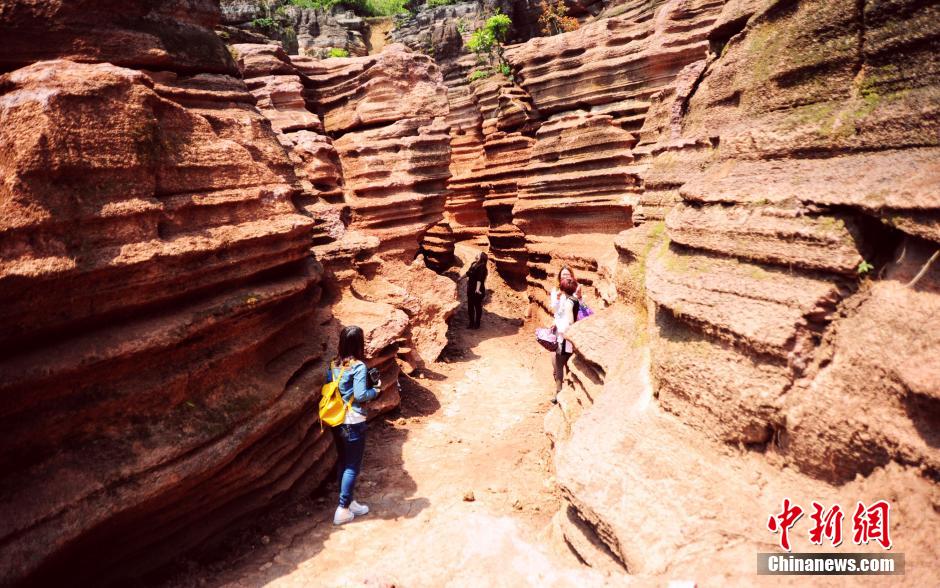 数人の写真愛好家はこのほど、重慶市酉陽トゥチャ族ミャオ族自治県麻旺鎮白竹村に広がる赤い石林に引きつけられた。