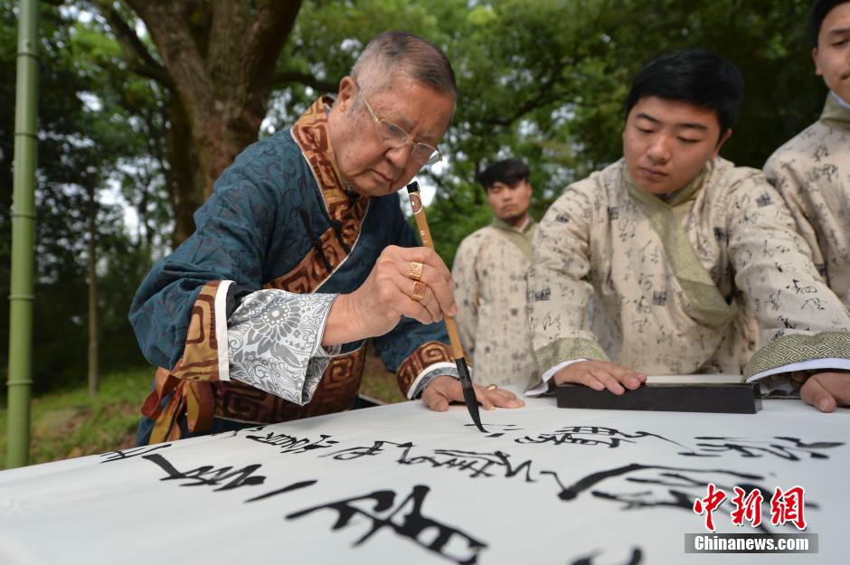 中国蘭亭書道祭り、「曲水の宴」を再現