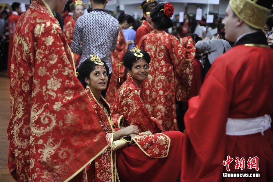 重慶で伝統的な集団結婚式 外国人カップルが参加