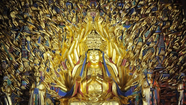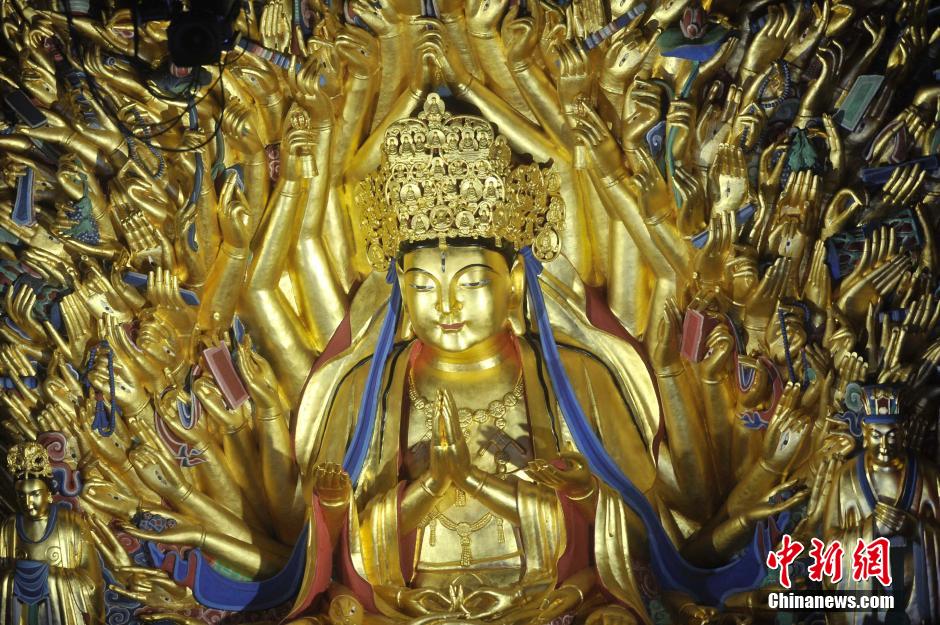 6月13日に伝えられたところによると、閉鎖から8年が経った世界文化遺産の大足石刻の千手観音が修復を終え、金色の千手観音像が6月13日から一般に公開された。