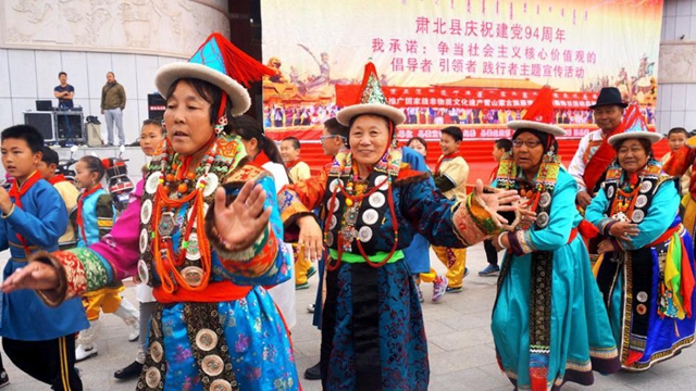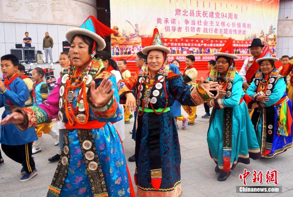 7月1日、甘粛省粛北モンゴル族自治県で「国家級無形文化遺産の雪山モンゴル族衣装の普及の日」活動が始まり、民族衣装のショーが行なわれた。ショーの後、観衆は「安代舞」を楽しく踊った。毎週水曜日は「民族衣装の日」と定められ、省内の各少数民族に民族の特徴がある服を着るよう促した。また、全社会が積極的に参与し、民族衣装着用を日常化、社会化させ、きらびやかで多彩な雪山モンゴル族の服飾文化を伝承し、押し広めるよう呼びかけた。粛北モンゴル族自治県は甘粛省で唯一のモンゴル族をはじめとする少数民族自治県である。モンゴル族文化は同県の民族文化の主体で、雪山モンゴル族の服飾は粛北モンゴル族文化の傑作かつ規範であり、2008年に国家級無形文化遺産に指定された。