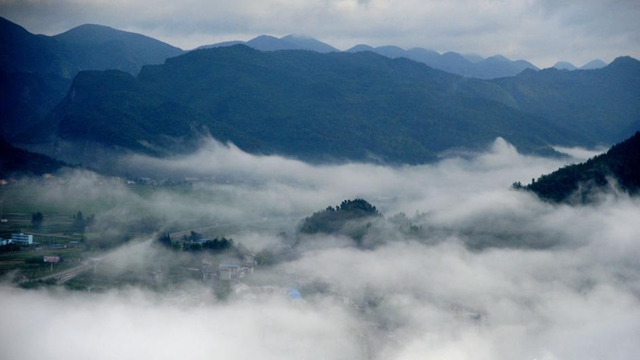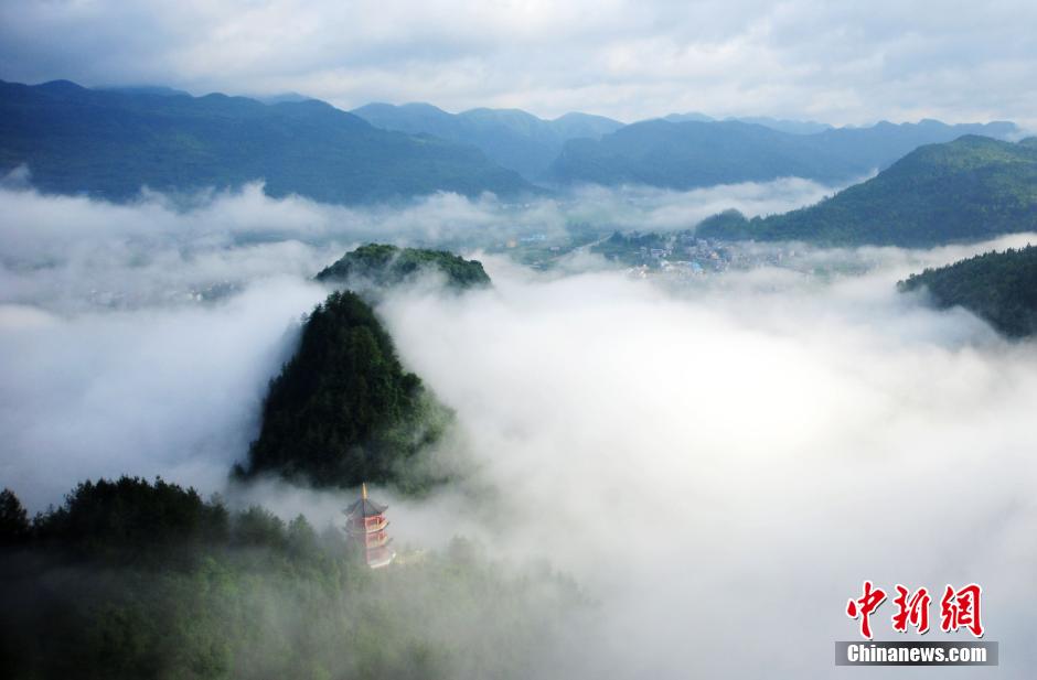 7月3日、重慶市酉陽トゥチャ族ミャオ族自治県の金銀山に現れた絵のような雲海。連日にわたり、重慶市酉陽トゥチャ族ミャオ族自治県では雨が降り、濃い霧が金銀山に立ち込め、山奥の静けさと自然の美しさには心を癒されるものがある。雨がやみ晴れた後、空高くに雲がかかり、霧が立ちこめたこの風景は美しい絵のように魅惑的である。