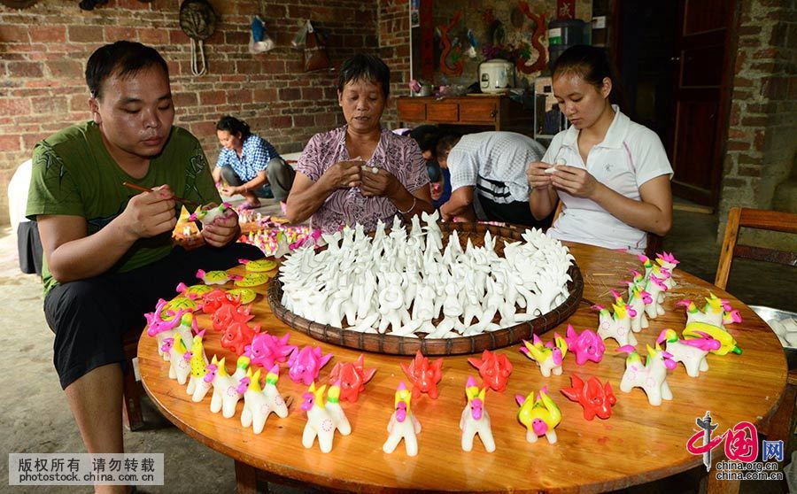 9月25日、広西チワン族自治区。「小馬仔」を作る忻城県城関鎭板范団村の村民。
