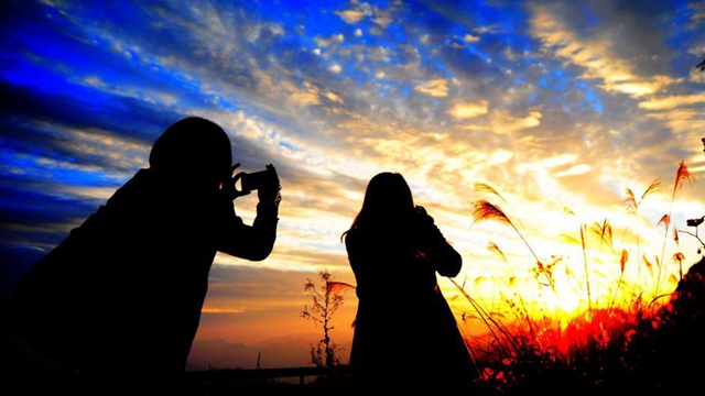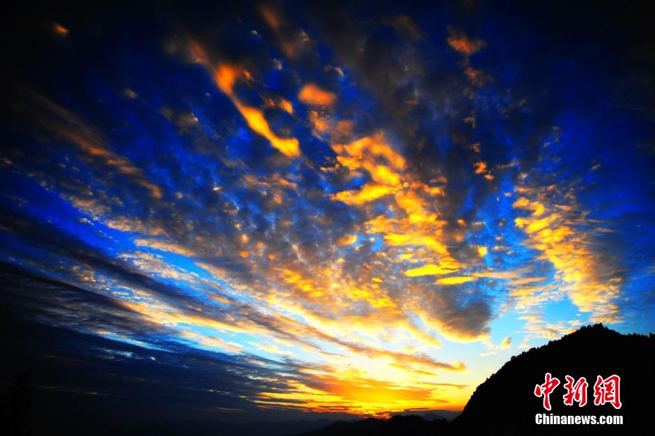 重慶酉陽トゥチャ族ミャオ族自治県塗市郷にこのほど、美しい夕焼けが現れ、多くの市民が携帯電話で写真を撮った。