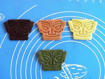 三星堆博物館は昨年、青銅面具の形をしたビスケットを開発。黄、緑、橙、黒の四色があり、バター、抹茶、イチゴ、チョコレートの味となっている。意匠権も申請中だ。